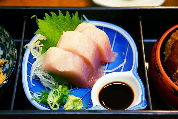 淡粉色的金枪鱼刺身,丰腴软滑。